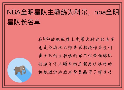 NBA全明星队主教练为科尔,nba全明星队长名单